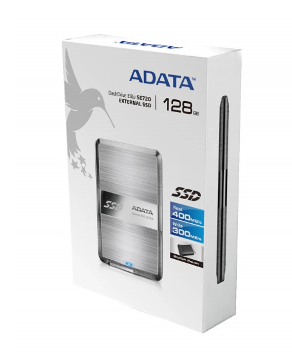 ADATA SE720. Capacité du Solid State Drive (SSD): 128 Go, Facteur de forme SSD: 2.5″. Connecteur USB: USB, Version USB: 3.2 Gen 1 (3.1 Gen 1). Vitesse de lecture: 375 Mo/s, Vitesse d’écriture: 420 Mo/s. Couleur du produit: Aluminium