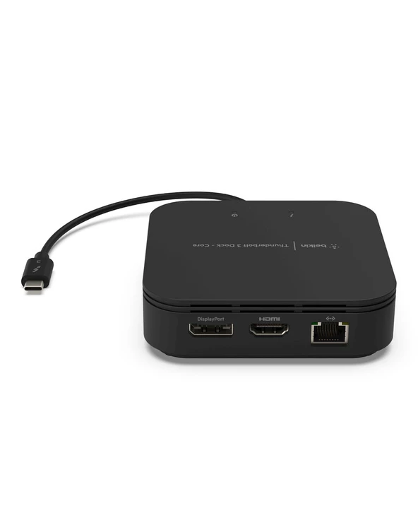 Belkin Dock Core. Interface de l’hôte: Thunderbolt 3, Interfaces Hub: 3,5mm, DisplayPort, HDMI, RJ-45, USB 3.2 Gen 1 (3.1 Gen 1) Type-A, USB 3.2 Gen 2 (3.1 Gen 2) Type-C. Taux de transfert de données: 40000 Mbit/s, Couleur du produit: Noir, Délivrance de la puissance USB jusqu’à: 60 W. Type d’interface Ethernet: Gigabit Ethernet. Type d’alimentation d’énergie: USB