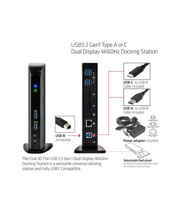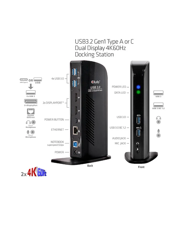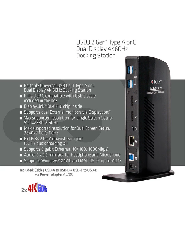 Bon marché 💯 CLUB3D USB3.2 Gen1 Type A Or C Dual Display 4K60Hz Docking Station DisplayLink Certified 👏