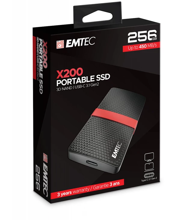 Remise 🔥 Emtec X200 256 Go Noir, Rouge 🎉