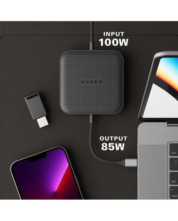 HYPER HD583-GL. Technologie de connectivité: Station d’accueil, Interface de l’hôte: USB 3.2 Gen 1 (3.1 Gen 1) Type-C, Délivrance de la puissance USB jusqu’à: 85 W. LAN Ethernet : taux de transfert des données: 10,100,1000 Mbit/s. Couleur du produit: Noir, Taux de d’actualisation maximal: 60 Hz. Prise en charge du système d’exploitation Windows: Windows 10, Windows 8, Windows 8.1, Prise en charge du système d’exploitation Mac: MacOS, Système mobile supporté: iPadOS. Largeur: 84,9 mm, Profondeur: 84,9 mm, Hauteur: 19,4 mm
