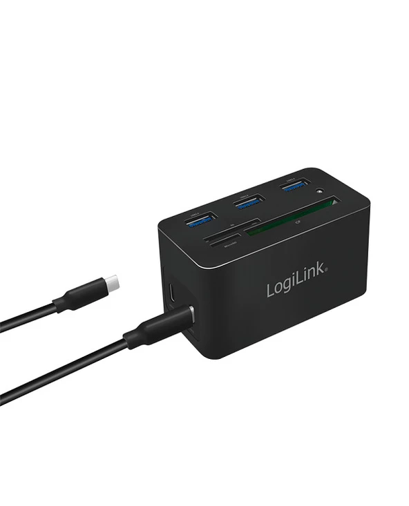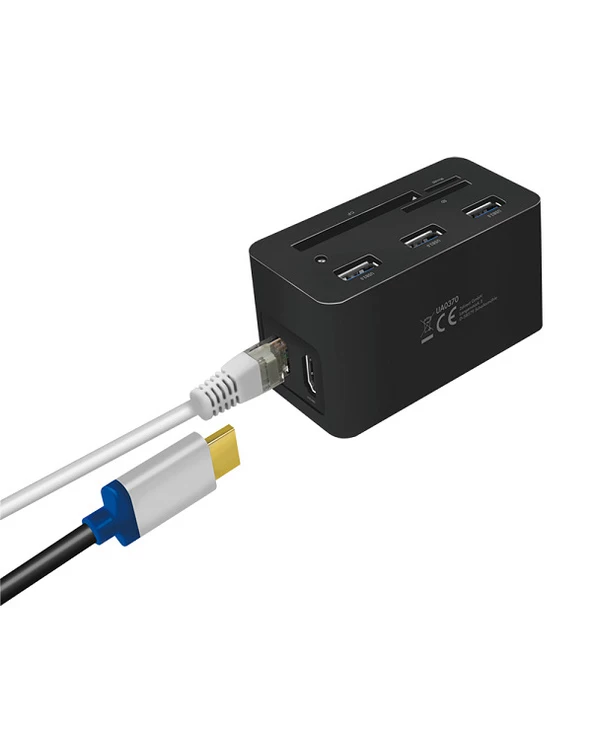 LogiLink UA0370. Technologie de connectivité: Avec fil, Interface de l’hôte: USB 3.2 Gen 1 (3.1 Gen 1) Type-C, Délivrance de la puissance USB jusqu’à: 60 W. LAN Ethernet : taux de transfert des données: 10,100,1000 Mbit/s. Couleur du produit: Noir, Cartes mémoire compatibles: CF, MicroSD (TransFlash), SD, Taux de transfert des données: 5 Gbit/s. Largeur: 46 mm, Profondeur: 41 mm, Hauteur: 86 mm. Largeur du colis: 112 mm, Profondeur du colis: 50 mm, Hauteur du colis: 110 mm