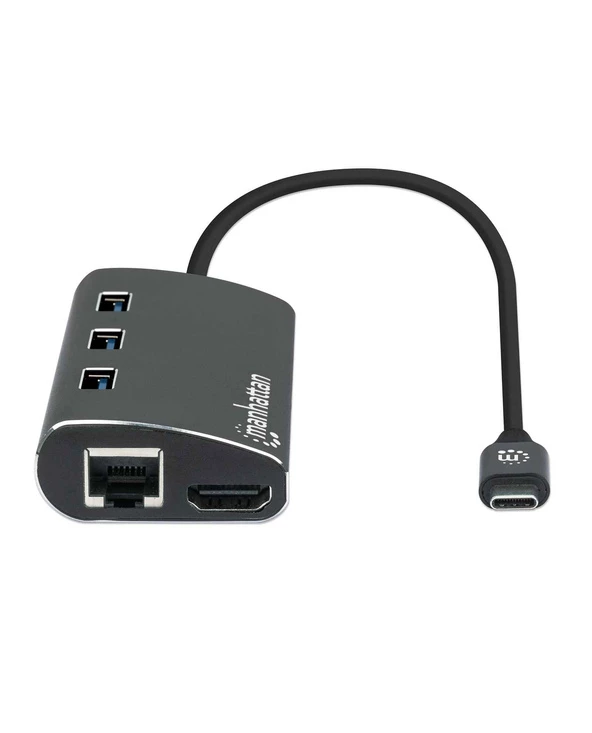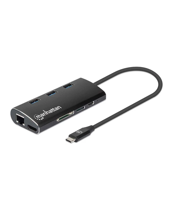 Manhattan 152440. Interface de l’hôte: USB Type-C, Interfaces Hub: HDMI, RJ-45, USB 3.2 Gen 1 (3.1 Gen 1) Type-A, USB 3.2 Gen 1 (3.1 Gen 1) Type-C, Résolution maximum (HDMI): 3840 x 2160 pixels. Taux de transfert de données: 800 Mbit/s, Couleur du produit: Noir, Matériau du boîtier/corps: Aluminium. Type d’alimentation d’énergie: USB, Tension de sortie: 20 V, Courant de sortie: 5 A. Prise en charge du système d’exploitation Windows: Windows 10,Windows 7,Windows 8.1,Windows Vista,Windows XP, Prise en charge du système d’exploitation Mac: Mac OS X 10.7 Lion,Mac OS X 10.8 Mountain Lion,Mac OS X 10.9 Mavericks. Largeur: 45 mm, Profondeur: 105 mm, Hauteur: 15 mm