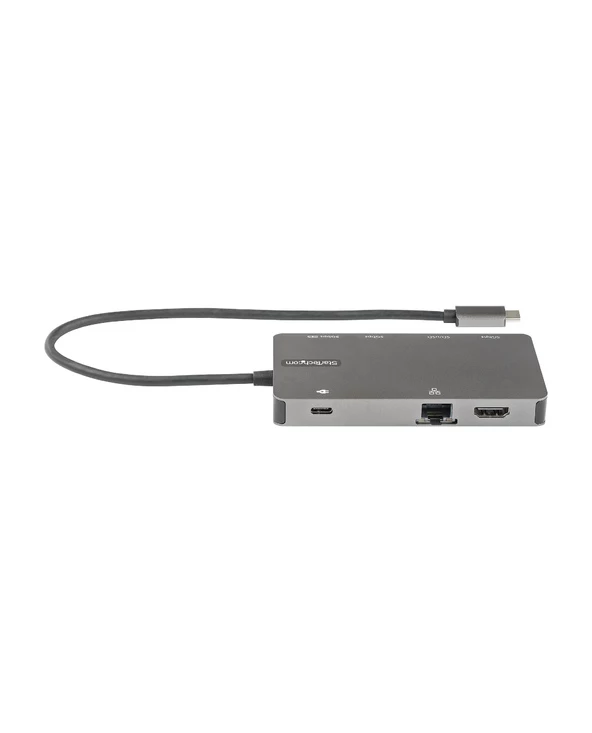 Adaptateur Multiport USB-C | Vidéo HDMI ou VGA | 100W PD Pass-Through | Hub USB 2 ports (5Gbps) | Lecteur de Cartes SD/MicroSDCet adaptateur multiport USB-C prend en charge le HDMI® 4K 30Hz ou le VGA 1080p et transforme votre MacBook Pro, Dell XPS, ou tout autre ordinateur portable ou tablette USB-C™ en une station de travail, où que vous soyez. L’adaptateur multiport USB Type-C offre une sortie vidéo HDMI 4K ou VGA 1080p, deux ports USB 3.1 Gen 1 Type-A (5Gbps) (dont un port Fast Charge), un port USB 3.1 Gen 1 Type-C (5Gbps), un lecteur de cartes SD/MicroSD et un port Gigabit Ethernet, le tout via une seule connexion au port USB-C ou Thunderbolt 3/4™ de votre ordinateur portable. De plus, il offre une charge avancée grâce à l’USB Power Delivery 3.0 et un câble hôte extra-long attaché de 12 pouces (30 cm) pour une portée étendue afin d’offrir une plus grande flexibilité d’installation.L’USB 3.1 Gen 1 (5Gbps) est également connu sous le nom d’USB 3.2 Gen 1 (5Gbps) et d’USB 3.0 (5Gbps).Améliorer la productivitéLa station d’accueil portable offre une flexibilité vidéo polyvalente en connectant votre ordinateur portable à un écran HDMI 4K 30Hz (4096 x 2160p) ou à un écran VGA 1080p (60Hz) (1920×1080) pour créer une station de travail puissante. Pour une flexibilité vidéo accrue, la station d’accueil prend également en charge les moniteurs ultra-larges.Connecter vos appareilsLe hub USB-C vers USB 3.1 Gen 1 vous offre deux ports USB-A (5Gbps) et un port USB-C (5Gpbs) pour connecter vos périphériques USB.Lecteur de carte SD intégréAccédez à votre contenu multimédia en toute simplicité. L’adaptateur multiport permet d’accéder directement à vos cartes mémoire SD, SDHC™ et SDXC™ ou à vos cartes microSD (uSD).Chargez votre ordinateur portable et vos périphériquesAvec la prise en charge de l’USB PD 3.0 (jusqu’à 100W), l’adaptateur multiport USB Type-C vous permet d’alimenter et de charger votre ordinateur portable lorsqu’un adaptateur électrique est connecté au port d’entrée d’alimentation USB-C. De plus, l’un des ports USB-A (5Gbps) prend en charge la charge rapide BC 1.2 pour alimenter vos périphériques lorsque la station d’accueil est connectée à un adaptateur d’alimentation USB-C. Le PD 3.0 est doté de la fonction Fast Role Swap pour éviter toute interruption des fonctions USB, Ethernet et vidéo lorsque vous changez de source d’alimentation (adaptateur d’alimentation USB-C à l’alimentation du bus).Connectivité réseau fiableLe port Gigabit Ethernet assure un accès fiable au réseau filaire avec la prise en charge de l’amorçage PXE et de WoL.Améliorer la productivité et la gestion des périphériques avec l’application StarTech.com Connectivity ToolsDéveloppée pour améliorer les performances et la sécurité, StarTech.com Connectivity Tools est la seule suite logicielle du marché qui fonctionne avec une large gamme d’accessoires de connectivité informatique. La suite logicielle comprend :•Utilitaire de mise en page avancée de Windows : Pour configurer et enregistrer des dispositions de fenêtres personnalisées.•Utilitaire de transmission d’adresses Mac : Pour améliorer la sécurité du réseau.•Utilitaire de surveillance des événements USB : Pour suivre et enregistrer les périphériques USB connectés•Utilitaire de commutation automatique Wi-Fi : Permettant aux utilisateurs d’accéder rapidement à des vitesses de réseau plus élevées via un réseau local câblé.Pour plus d’informations et pour télécharger l’application StarTech.com Connectivity Tools, veuillez visiter le site : www.StarTech.com/Connectivity-ToolsLe DKT30CHVSDPD bénéficie d’une garantie StarTech.com de 3 ans et d’une assistance technique gratuite à vie.The StarTech.com Advantage