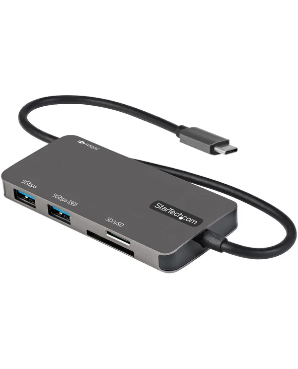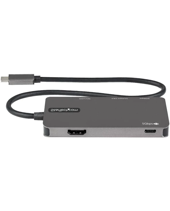 Adaptateur Multiport USB-C | 4K @ 30Hz HDMI | 2x USB-A | Lecteur Cartes SD & MicroSD | Alimentation Passthrough 100WCet adaptateur multiport USB-C avec HDMI® transforme votre ordinateur MacBook Pro, Dell XPS ou tout autre ordinateur portable USB-C™ en poste de travail, où que vous soyez. L’adaptateur multiport USB Type-C offre une sortie vidéo HDMI 4K, deux ports USB 3.2 Gen 2 Type-A (10 Gbits/s) et un port USB Type-C™ (données/alimentation), le tout via une connexion au port USB-C ou Thunderbolt 3™ de votre ordinateur portable. De plus, il offre une charge avancée grâce à l’alimentation USB Power Delivery 3.0 et un câble hôte extra-long de 30 cm pour une portée étendue et une plus grande souplesse d’installation.Boostez votre productivitéLe mini dock USB-C connecte votre ordinateur portable à un moniteur HDMI 4K 30 Hz (3840 × 2160p) pour en faire une puissante station de travail. Elle peut également se connecter à un écran ultra-large.Connectez vos appareilsLe Hub USB-C vers USB 3.2 Gen 1 met à votre disposition un port USB-C (données/alimentation partagées) et deux ports USB-A pour connecter vos périphériques USB, récents comme plus anciens.Lecteur de carte SD intégréAccédez à votre contenu multimédia facilement. L’adaptateur multiports offre un accès direct à vos cartes mémoire SD, SDHC™ et SDXC™ ou à vos cartes microSD (uSD).Chargez votre ordinateur portable et vos périphériquesGrâce à la prise en charge de la technologie USB Power Delivery 3.0 (jusqu’à 100 W), l’adaptateur multiport USB Type-C vous permet d’alimenter et de recharger votre ordinateur portable et vos périphériques une fois connectés à un adaptateur d’alimentation USB-C. La technologie Power Delivery 3.0 propose une fonction de changement rapide des rôles (Fast Role Swap) permettant d’éviter l’interruption des données USB lors du changement de la source d’alimentation (p. ex. passage d’un adaptateur d’alimentation USB-C à une alimentation par bus).Le modèle DKT30CHSDPD bénéficie de la garantie StarTech.com de 3 ans et de l’assistance technique à vie gratuite.Remarque : pour garantir un fonctionnement optimal de l’adaptateur; le port USB-C de votre ordinateur portable doit prendre en charge la technologie USB Power Delivery.The StarTech.com Advantage
