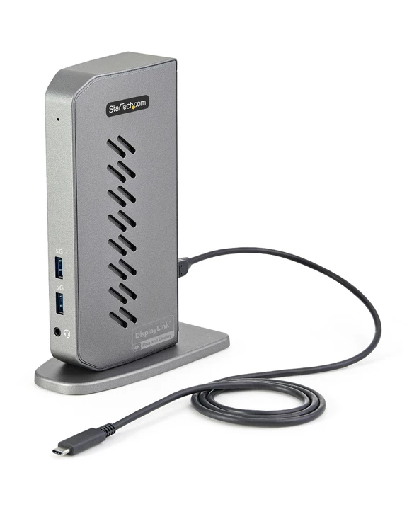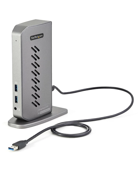 Dock Hybride Universel | USB Type-C & USB Type-A | Dual 4K 60Hz HDMI & DisplayPortPassez de l’ancienne norme USB-A (USB 3.0) à la nouvelle norme USB-C grâce à cette station d’accueil universelle pour ordinateurs portables USB-C et USB-A. La station d’accueil USB 3.2 Gen 2 (10 Gbit/s) Type-C, qui permet une recharge rapide, est dotée de deux ports d’écran HDMI et/ou DisplayPort, de six ports de périphériques descendants USB Type-A et d’une prise audio pour casque.Connexions d’écran flexiblesCette double station d’accueil vidéo pour PC 4K 60 Hz prend en charge les écrans Ultra HD DisplayPort et/ou HDMI et vous permet de configurer vos connexions vidéo pour répondre au mieux à vos besoins.•Double DisplayPort 4K | Jusqu’à 4096 x 2160p à 60 Hz•Double HDMI 4K | Jusqu’à 4096 x 2160p à 60 Hz•DisplayPort 4K + HDMI 4K | Jusqu’à 4096 x 2160p à 60 Hz•DisplayPort 5K * | Jusqu’à 5120 × 2880*Nécessite un écran prenant en charge le format 5K avec deux ports DPCertifié pour une compatibilité et des performances optimalesCette station d’accueil PC respecte les normes les plus strictes du secteur en matière de certification DisplayLink (connexions vidéo) afin de garantir une qualité, des performances et une compatibilité optimales.Options d’installation flexiblesPour une configuration rapide et immédiate, les deux câbles hôte fournis (USB-C et USB-A) se connectent à n’importe quel ordinateur portable. Le socle fourni vous permet de positionner la station d’accueil à la verticale afin de la poser sur le bureau ou de libérer de l’espace.Les connexions dont vous avez besoinConnectez vos périphériques à l’aide de six ports descendants USB Type-A (USB 3.0, 5 Gb/s) – deux à l’avant; quatre à l’arrière. La station d’accueil dispose d’un port GbE et d’une prise audio pour casque à 4 positions de 3,5 mm.Recommandé par les professionnels de l’informatique depuis 1985StarTech.com effectue des tests de compatibilité et de performance approfondis sur tous ses produits pour s’assurer de respecter ou dépasser les normes du secteur et de proposer des produits de haute qualité aux professionnels des IT. Forts d’une vaste expertise des produits, nos conseillers techniques StarTech.com locaux travaillent directement avec nos ingénieurs de StarTech.com pour accompagner nos clients avant et après la vente.Le modèle DK30A2DHUUE bénéficie d’une garantie StarTech.com de 3 ans et de l’assistance technique à vie gratuite.The StarTech.com Advantage
