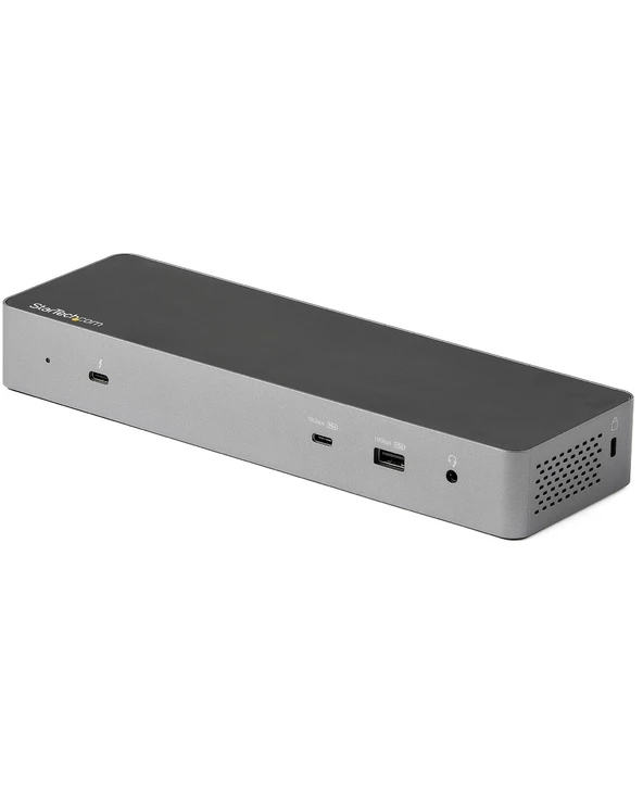 StarTech.com TB3CDK2DHUE. Technologie de connectivité: Avec fil, Interface de l’hôte: Thunderbolt 3, Délivrance de la puissance USB jusqu’à: 96 W. Couleur du produit: Noir, Gris, Taux de transfert des données: 40 Gbit/s, Résolution (numérique maximum): 7680 x 4320 pixels. Tension d’entrée AC: 100 – 240 V, Courant d’entrée: 2.5 A, Tension de sortie: 20 V. Prise en charge du système d’exploitation Windows: Windows 10,Windows 10 Education,Windows 10 Education x64,Windows 10 Enterprise,Windows 10…, Prise en charge du système d’exploitation Mac: Mac OS X 10.14 Mojave,Mac OS X 10.15 Catalina,Mac OS X 10.15.3 Catalina,Mac OS X 11.0 Big Sur, Prise en charge du système d’exploitation Linux: Ubuntu 18.04 LTS. Largeur: 220 mm, Profondeur: 80 mm, Hauteur: 30 mm
