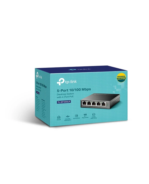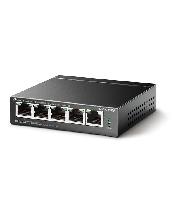 TP-LINK TL-SF1005LP. Interfaces Hub: RJ-45. Taux de transfert de données: 1000 Mbit/s, Couleur du produit: Noir. Type d’interface Ethernet: Gigabit Ethernet, Standards réseau: IEEE 802.3af,IEEE 802.3i,IEEE 802.3u,IEEE 802.3x. Type d’alimentation d’énergie: CC, Consommation (max): 41 W, Tension d’entrée: 53.5 V. Largeur: 99,8 mm, Profondeur: 98 mm, Hauteur: 25 mm