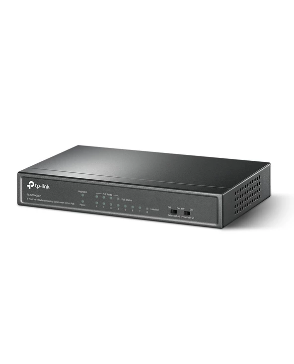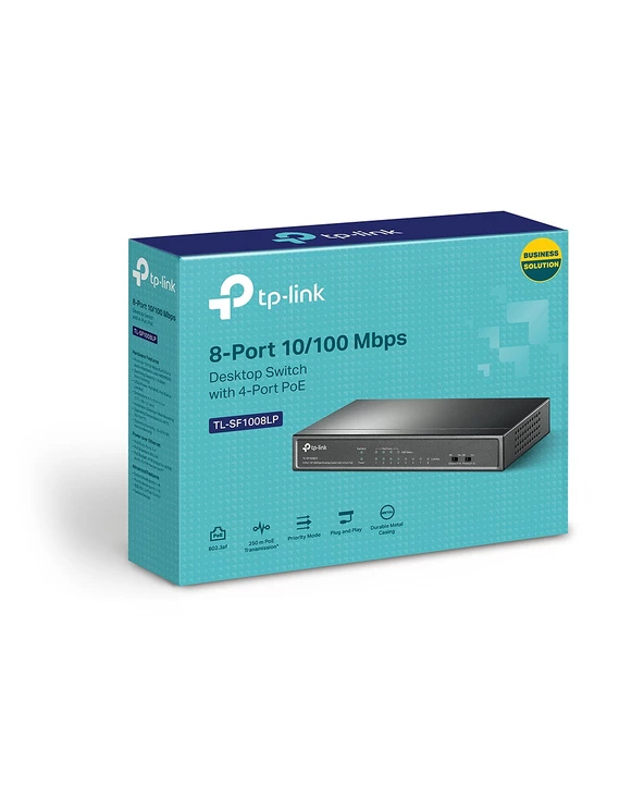 TP-LINK TL-SF1008LP. Type de commutateur: Non-gĂ©rĂ©. Type de port Ethernet RJ-45 de commutation de base: Fast Ethernet (10/100), QuantitĂ© de ports Ethernet RJ-45 de commutation de base: 8. RĂ©pertoire MAC: 2000 entrĂ©es, CapacitĂ© de commutation: 1,6 Gbit/s. Voltage d’entrĂ©e DC: 53.5 V. Connecteur d’alimentation: DC-in jack. Connexion Ethernet, supportant l’alimentation via ce port (PoE)