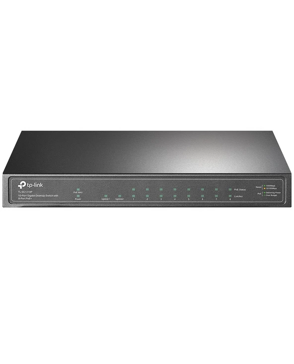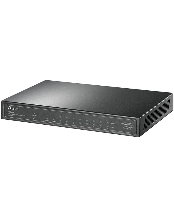 TP-LINK TL-SG1210P. Type de port Ethernet RJ-45 de commutation de base: Gigabit Ethernet (10/100/1000), Quantité de ports Ethernet RJ-45 de commutation de base: 9. Répertoire MAC: 4000 entrées, Capacité de commutation: 20 Gbit/s. Standards réseau: IEEE 802.1p,IEEE 802.3af,IEEE 802.3at,IEEE 802.3x. Voltage d’entrée DC: 53.5 V. Connexion Ethernet, supportant l’alimentation via ce port (PoE). Montage mural